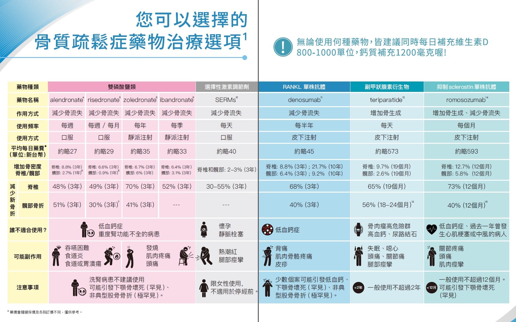 參考資料來源:中華民國骨質疏鬆症學會,骨鬆SDM手冊